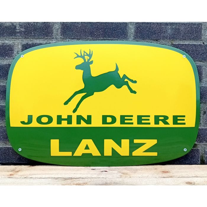 John deere lanz emaljskylt med fyra hängande hål.